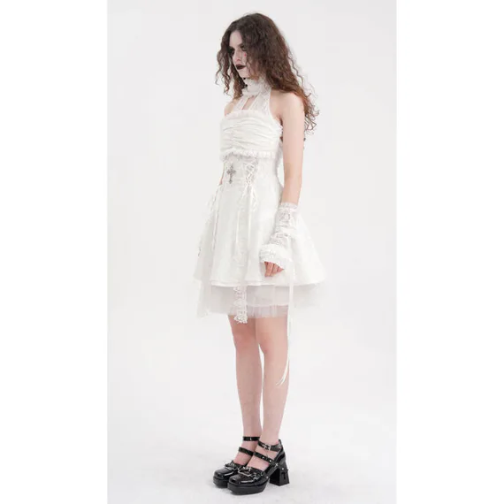 šaty dámské DEVIL FASHION - White Gothic Sexy Cut Out